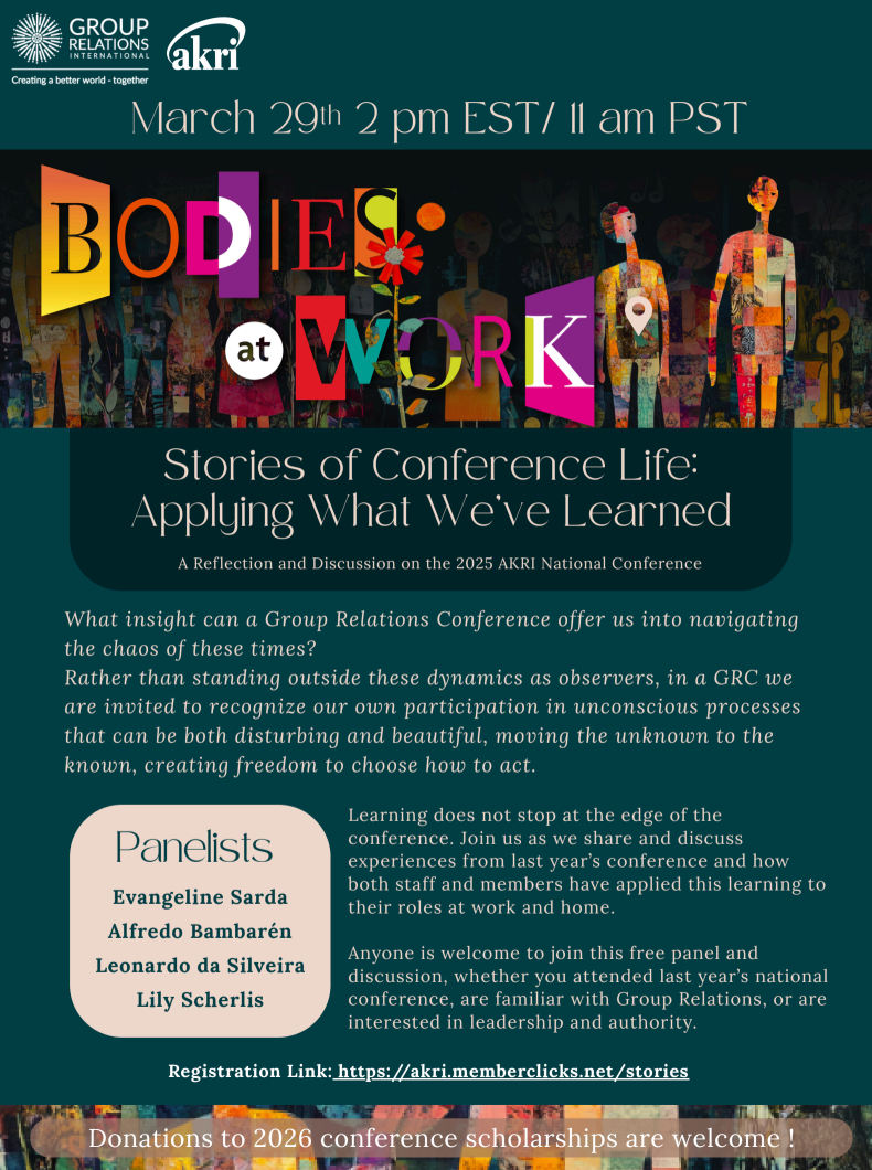 As an affiliate of the AK Rice Institute, CCSGO is a community dedicated to exploring how people work, lead, and learn together. Through conferences, workshops, and ongoing member engagement, we provide spaces to examine group dynamics, strengthen organizational roles, and support the evolving practice of Group Relations in Chicago and beyond.